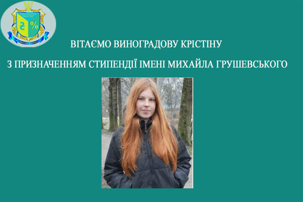 - Вітаємо ВИНОГРАДОВУ КРІСТІНУ з призначенням стипендії імені Михайла Грушевського