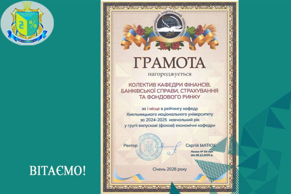 Вітаємо колектив кафедри фінансів, банківської справи, страхування та фондового ринку12.01.202621.01.2026
