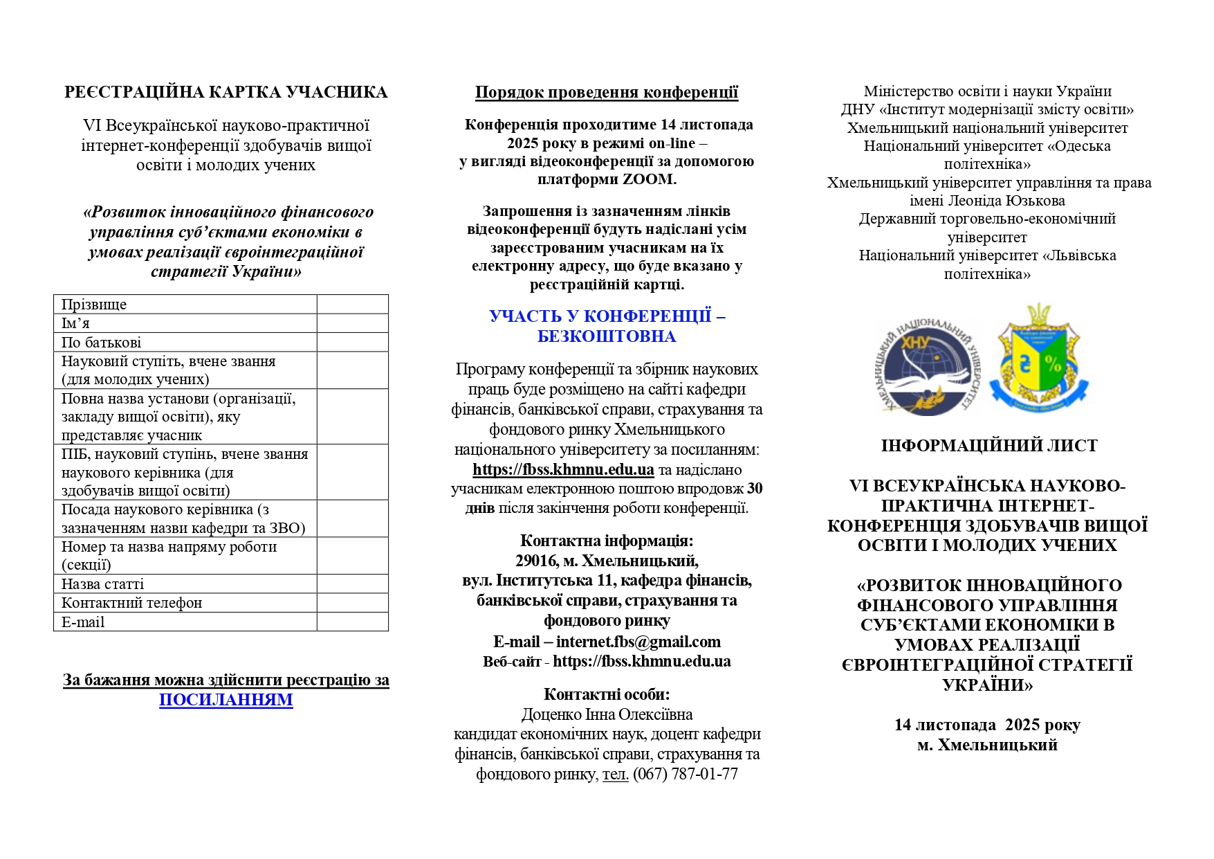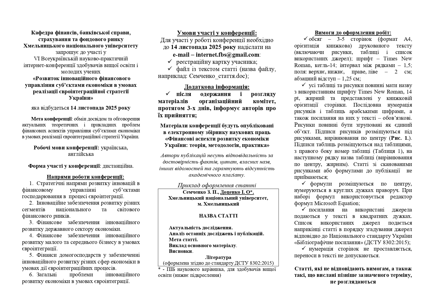 Кафедра фінансів, банківської справи, страхування та фондового ринку Хмельницького національного університету