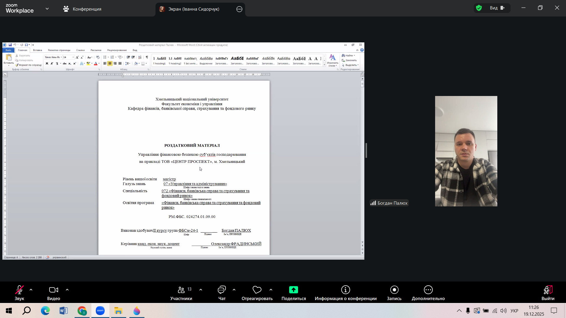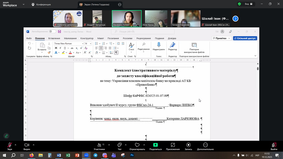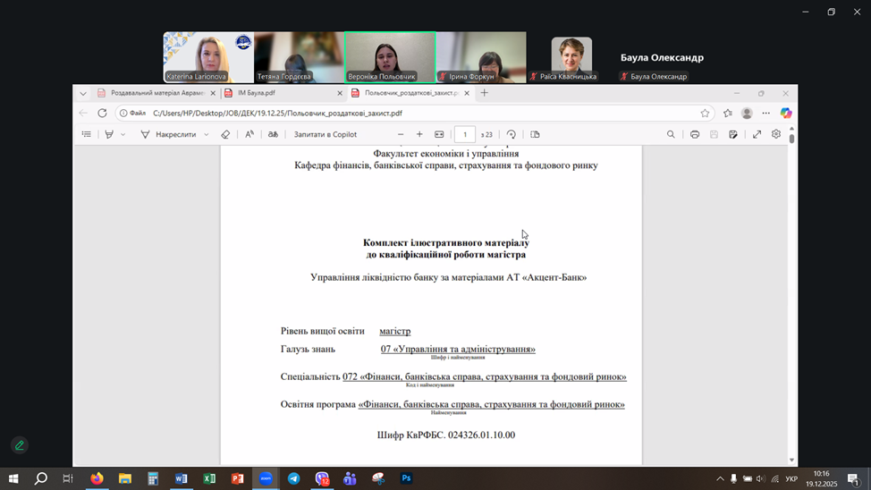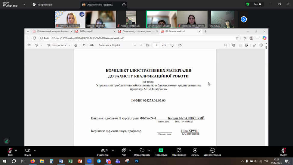 Протягом 19-26 грудня 2025 року відбувся захист кваліфікаційних робіт магістрів ОП “Фінанси, банківська справа, страхування та фондовий ринок”.